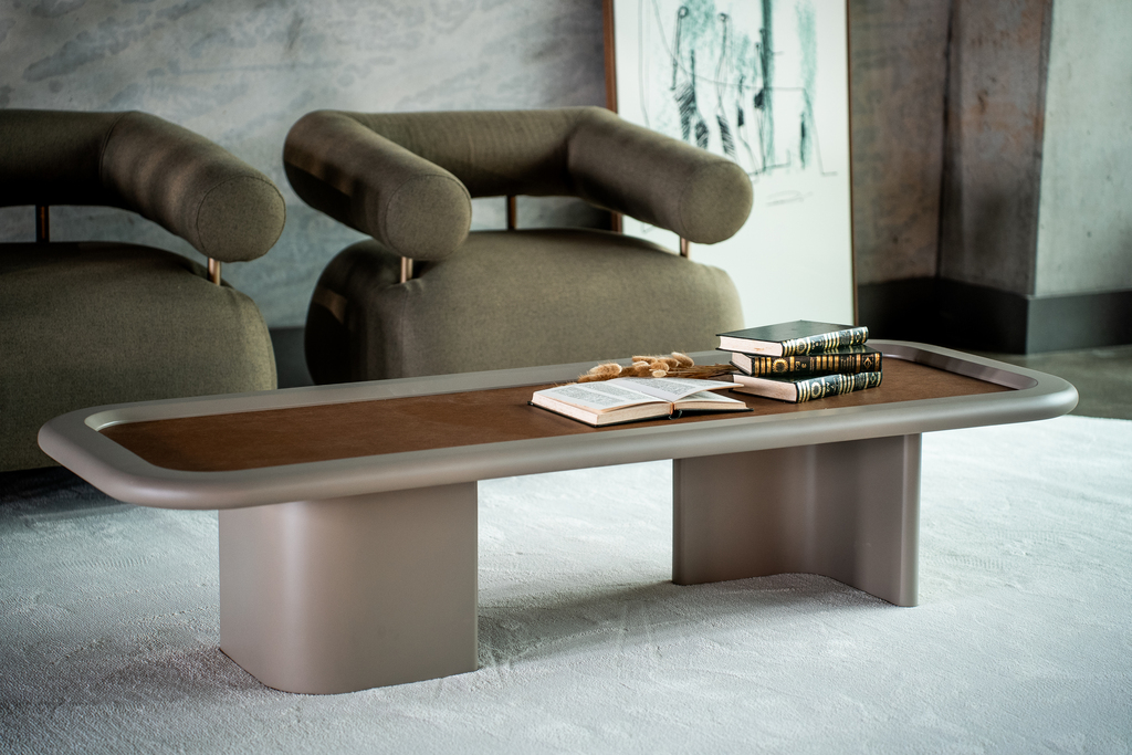 A Mesa de Centro Myth Retangular é a escolha perfeita para quem busca um móvel que une design sofisticado e funcionalidade para transformar sua sala de estar. Seu tampo retangular pode ser personalizado com fundo em recouro, proporcionando um toque macio e elegante que valoriza o ambiente com muito estilo.