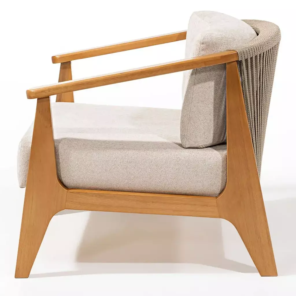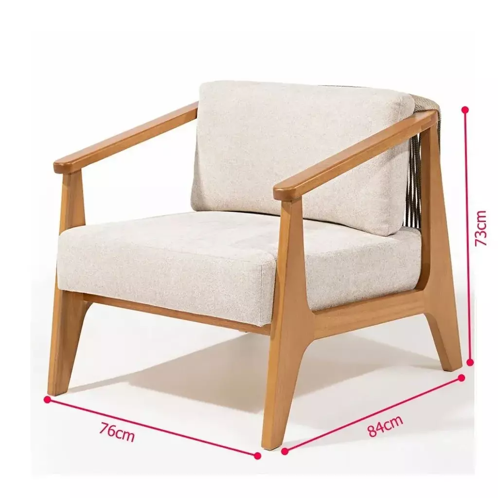 A Poltrona Pouso é a união perfeita entre conforto, estética natural e design contemporâneo. Com estrutura robusta em madeira tauari uma madeira nobre brasileira sua base traz acabamento em verniz na cor Mel, realçando a tonalidade quente e os veios naturais do material. Esse detalhe confere elegância e durabilidade à peça, ao mesmo tempo que ressalta sua vocação artesanal.O encosto se destaca pelo trabalho em corda náutica na cor Rami, que forma uma trama leve e ao mesmo tempo resistente. Esse elemento traz um toque de textura ao visual da poltrona e contribui para a sensação de acolhimento e leveza. A almofada do encosto, solta e revestida em tecido bege, oferece ainda mais conforto, complementando o assento da mesma tonalidade. O tom neutro do tecido harmoniza facilmente com diferentes paletas de cores, criando uma base suave para composições diversas.A Poltrona Pouso é ideal para compor salas de estar, varandas cobertas ou até mesmo lounges em ambientes comerciais sofisticados. Sua estética natural dialoga muito bem com decorações que valorizam materiais orgânicos, como o estilo contemporâneo natural, o rústico-chique ou o boho sofisticado. Ela também se integra com propostas de design mais minimalistas, oferecendo um ponto de aconchegosem pesar visualmente o ambiente.Versátil e expressiva, a Poltrona Pouso é uma peça que convida a desacelerar e apreciar o espaço ao redor.